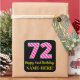 Este alegre design do adesivo quadrado com tema de aniversário apresenta um grande número "72" com uma rosa claro e um padrão de listras cor-de-rosa-escuro, juntamente com a mensagem "Feliz 72º Aniversário", e um nome personalizável. O fundo é preto colorido. Bons, alegres, autocolantes personalizados como este podem ser dados como presente de aniversário, ou usados enquanto embrulham presentes/presentes, ou talvez usados como decorações de festas de aniversário quando celebram o 72º aniversário de alguém. [~Z0000578]