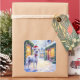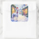 Adesivo Quadrado Greyhound Snowy Village Santa Hat Christmas Art