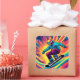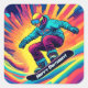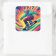 Adesivo Quadrado Groovy Psychedelic Teen Snowboarder Aniversário