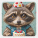 Adesivo Quadrado Guaxinim Adorável com Bolo de Aniversário
