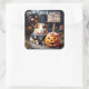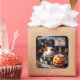 Adicione um charme assustador em qualquer lugar com estes adesivos de Halloween com uma porca-da-índia vestida de esqueleto! Sentada ao lado de um balde de abóbora, repleta de doces coloridos, com um cartaz "Trick or Treat" e um pano de fundo assombrado da vila brilhando com abóboras e teias de sopa, este design brincalhão captura a diversão festiva do Halloween. Perfeito para decorar convites, envelopes, bolsas de festas ou presentes, esses adesivos de Dia das Bruxas da cobaia são uma maneira divertida de compartilhar o espírito da época. Com o seu design de cobaia e detalhes sazonais, eles são ideais para festas de Halloween, artesanatos, e acrescentando um toque mágico onde quer que você os coloque. conteúdo generativo