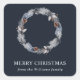 Uma abordagem minimalista para adesivos de feriados com um fundo azul escuro rústico com uma guirlanda prateada e azul elegante na frente e uma fonte limpa e facilmente personalizável. Perfeito para envelopes e sacos de presente.
