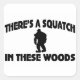 Citação engraçada infame, "Há um Esquadrão Nessas Florestas," usando o apelido Bigfoot reduzido, tudo em simples letras pretas com uma silhueta Sasquatch no meio da frase.