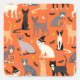 Cute White cat, black cat, tabby cat, Persian cat, Siamese cat and tuxedo cat wear witch hats and Halloween costumes with scattered bats and paw prints.