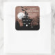 Um grande castelo preto e árvores nuas contra um céu noturno assustador, estes autocolantes quadrados são divertidos para uma festa de fantasia de Halloween, festa de aniversário de Halloween ou qualquer ocasião. CORRESPONDENTE a itens na nossa coleção.