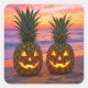 Adesivo Quadrado Halloween Pineapple Jack-o-lanterns On a Beach