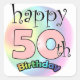 Roze Gelukkige 50ste verjaardag. Voor iemand die vijftig is geworden. Vrolijk ontwerp met regenboog kleuren.