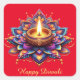 Adesivo Quadrado Happy Diwali Diya Rangoli Festival do Vermelho Cla