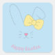 Adesivo quadrado com ilustração digital de páscoa, mostrando partes da figura de um coelho e com escrita "happy easter" abaixo. Ideal para presentear alguém especial ou usar durante a época festiva.