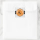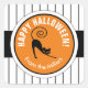 Este design de etiqueta quadrada apresenta um gato preto do Dia das Bruxas em um rótulo laranja e preto com o texto "Feliz Dia das Bruxas" em branco. O fundo é um padrão estreito de listras brancas e pretas. Personalize com seu nome ou outro texto. Procure ID686 para ver outros produtos com este design.