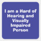The hard of hearing and visually impaired person blue sticker is a sticker for those with hearing and vision problems. It is simply designed with white writing on a blue background. It is a suitable gift for people with hearing and visual impairments.