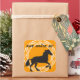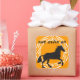 Simuleta branca e preta de um cavalo contra fundo amarelo mostarda e rodeada num círculo vintage. As palavras "Yom Huledet Sameach" (Parabéns em hebraico) combinam com a silohueta negra.
