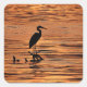 Este adesivo de arte apresenta um Herão Azul Excelente (ardea herodias) em silhueta, pescando nas águas rasas do lago Cayuga em Ithaca, Nova Iorque, que é um dos lagos dedos do norte de Nova York. Um lindo pôr do sol laranja, amarelo e dourado colorido as ondas e ondulações em um padrão de abstrato.