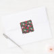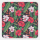 Adesivo Quadrado hibisco vermelho, orquídeas, aquarela tropical.