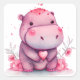 Adesivo Quadrado Hipopótamo Valentim com Coração Bonito