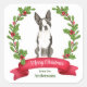 Adesivo Quadrado Holly Banner Boston Terrier Dog Natal