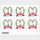 Nestes adesivos de correspondência de Férias, um retrato de aquarela de um lindo cão de Boston Terrier, com uma bela cor d'água, é cercado por uma coroa holly de morango vermelho. Na parte inferior está uma faixa vermelha com sua saudação de Natal personalizada, e sua assinatura está em verde embaixo dela.