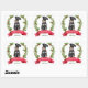 Nestes autocolantes de correspondência de Férias, um retrato de um adorável cão da Miniatura Schnauzer está rodeado por uma coroa de feno vermelho. Na parte inferior está uma faixa vermelha com sua saudação de Natal personalizada, e sua assinatura está em verde embaixo dela.