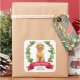 Nestes autocolantes de correspondência de Férias, um retrato de cor d'água de um cachorro de Poodle de damascos é cercado por uma coroa de feno vermelho. Na parte inferior está uma faixa vermelha com sua saudação de Natal personalizada, e sua assinatura está em verde embaixo dela.