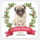 Adesivo Quadrado Holly Banner Pug Dog Natal