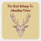 Esta etiqueta de etiqueta adesiva quadrada é bronzeada com a cabeça de um veado macho marrom com grandes galhadas esboçadas em vermelho profundo. Personalize seu texto com os modelos.