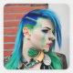 Vinhetas LGBTQIA+ com um gay ou homem trans colorido. Tatuagens e mowk coloridos em azul e verde.