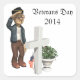 Esta imagem mostra uma saudação veterana a uma sepultura. A sepultura é decorada com uma cruz branca, uma planta cercada e a bandeira americana. Uma homenagem àqueles que lutaram pelo nosso país. Estes autocolantes estão disponíveis em estilos, formas e tamanhos variados.
