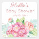 Adesivo Quadrado Hydrangea rosa e Chá de fraldas de pedonia Obrigad