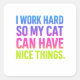 A bright, bold, and hilarious statement design for the dedicated cat parent! This quote, "I work hard so my cat can have nice things," perfectly captures the financial reality of loving a pampered feline. Featuring a vibrant, neon color gradient—cool blues blending into hot pinks and bright neon green—this design is a funny and relatable gift for cat owners, pet lovers, and anyone who sacrifices their paycheck for their beloved kitty's luxury.