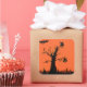 Ilustração de Halloween com árvore, coruja e abóbora.