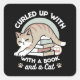 Adesivo Quadrado Ilustração de Gato do Livro ao Longo - Enrolada e