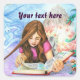 Imaginação, ilustração criativa que mostra uma menina lendo um livro cercado por sua imaginação (apresentando um castelo no topo de uma montanha, um bruxo combatendo um dragão, um unicórnio, uma fada puxando seu cabelo e um pequeno goblin tentando roubar seu anel). Pintura original feita com aquarelas pela artista "Luna" Siffert. Produto personalizável. Você pode adicionar texto e imagens, mudar estilos e tamanhos (dependendo do tipo de produto), etc. Este design também está disponível em outros produtos.
