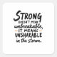 Uma poderosa design de tipografia, com uma citação inspiradora sobre a resiliência e a verdadeira força. A mensagem diz: "Forte não significa inseparável, significa inabalável na tempestade." Esta design celebra a habilidade de permanecer firme e inflexível ao enfrentar os desafios da vida. Perfeito para motivação, autoaperfeiçoamento, ou para quem precisa de um lembrete da sua dureza interior. Ele usa uma fonte de script de pincel ousada e desenhada à mão em um plano de fundo simples para maximizar o impacto.