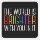 O mundo é mais brilhante com você. Seja uma força positiva no planeta com esta citação motivacional de felicidade para um amigo com depressão. Belo adesivo de inclusão de orgulho gay LGBTQ. Partilhe essa citação motivacional que estimula e levanta espíritos com suas afirmações. Perfeito para um psicólogo com doentes mentais deprimidos ou alguém com pensamentos suicidas.