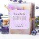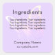 Um fundo colorido violeta, lavanda, texto preto. Decorado com uma borboleta rosa e violeta. Personalize e adicione um título, seus ingredientes de produto, nome comercial e informações de contato.