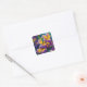 Adesivo Quadrado Iris Folhas plorais roxas e azuis-douradas