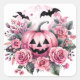 Adesivo Quadrado Jack-o-Lanterna com Rosas e Morcegos Rosa