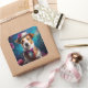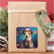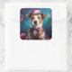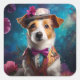 Adesivo Quadrado Jack Russell, chapéu branco, flor rosa
