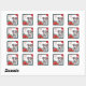 Neste adesivo, uma bela imagem aquática de um cão Jack Russell Terrier é emoldurada com buquês de poinsettia vermelha de cor aquosa de Natal. Uma borda externa de verde azul correspondente rodeia o branco interior, e mais imagens de poinsettia estão no canto superior direito. O texto vermelho e lacrimogêneo diz "FELIZ ANO NOVO NATAL MERRY". Bonito para sua correspondência de Férias ou pacotes de presentes.
