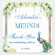 Adesivos de presente de agradecimento de casamento indiano com arco de flores de jasmim e pavão, pavão no jardim de jasmim, flores de gajra de jasmim em arco antigo, adesivos de festa de henna mehndi.