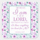 Adesivo Quadrado Jeremiah 32:27 com fundo de flores roxas