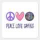 design de jogador legal e único com um símbolo de paz, um coração, um controlador de jogos e a citação "Jogo do Amor pela Paz". Para um jogador de verdade o jogo nunca acaba.