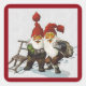Um par colorido de gnomos com barbas compridas fica junto na neve. Arte do século XIX por Jacobsen.