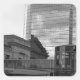 O Link é uma passarela de vidro elevado ligando a Estação Union (à esquerda na fotografia a preto e branco) ao Crown Center em Kansas City, Missouri. Fui atraído para a mistura de novos e antigos estilos arquitetônicos complementados pelas reflexões em nuvem sobre o edifício ao espelho no fundo. Fotografia a preto e branco de 35 mm. Copyright ©Claire E. Skinner. Todos os direitos reservados.