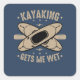 Design de kayak engraçado em T-shirts e mais excelente para qualquer um que ame caiaque, apresenta um casal de kays, paddles, e o texto diz Kayaking me deixa molhado.