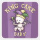 Um doce Mardi Gras King Cake Baby em um boné de Jester, segurando uma pulseira e máscara de olho. Arte roxa, verde e dourada, t-shirts, suores, cartas, presentes.