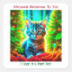 Bonito gatinho sentado em frente a árvores de Natal iluminadas personalizou bastões de trocadilhos de gata de Natal Feliz.