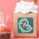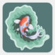 Aqui está minha pintura de peixe koi fofo apresentando um koi branco que é visto em uma laranja brilhante sobre um fundo aqua-teal.
