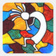 Vinheta quadrada com uma imagem de vidro manchado da divindade Kokopelli. Kokopelli é uma divindade da fertilidade, normalmente representada como um flautista jubarte (muitas vezes com penas ou saliências antenas na cabeça), que foi venerado por algumas culturas nativas americanas nos Estados Unidos sudoeste. Como a maioria das divindades de fertilidade, Kokopelli preside tanto ao parto quanto à agricultura. Ele também é um deus ardiloso e representa o espírito da música. Veja toda a coleção de Arizonas Sticker na seção CARDS, POSTCARDS & STICKERS.