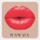 Uma imagem de pop Art de lábios vermelhos brilhantes vomitando-se por um beijo contra um fundo cor de café. Este obrigado que você cola mostrará seu apreço de uma maneira quadril e artística. Esta design inspira-se na pop, arte moderna, arte gráfica, cultura de hipsteres e é certamente uma obra de arte.